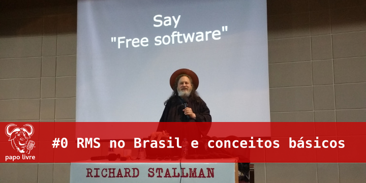 Neste primeiro episódio, Antonio Terceiro, Paulo Santana e Thiago Mendonça discutem a próximo vinda ao Brasil de Richard Mattew Stallman (RMS), o fundador do movimento do Software Livre. RMS vai fazer uma série de palestras durante um período de 3 semanas a partir do final de maio de 2017. Em seguida a conversa abrange diversos temas, como concepção e expectativas para este novo podcast, origens do software livre, conceitos básicos de software livre, e possíveis temas para episódios futuros